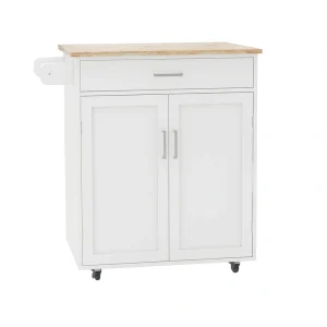 Bybafun White Mdf Base with Wood Top Rolling Kitchen Cart (29.3-in x 39.8-in x 33.7-in)