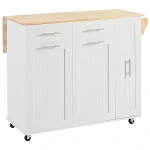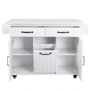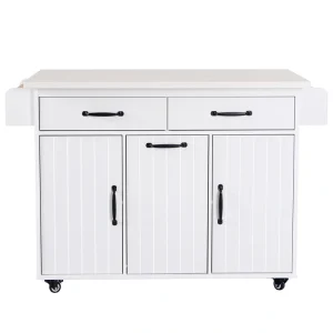 Bybafun White Mdf Base with Mdf Wood Top Rolling Kitchen Island (33.2-in x 49-in x 37.5-in)