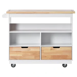 Bybafun White Mdf Base with Wood Top Rolling Kitchen Island (17-in x 50-in x 36.9-in)