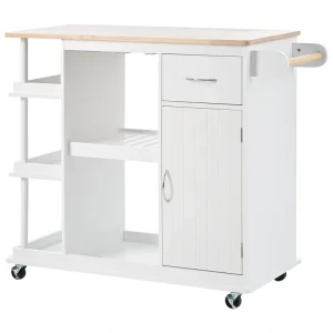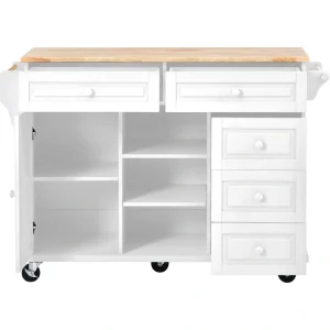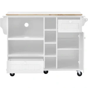 CESICIA White Wood Base with Wood Top Rolling Kitchen Island (18.1-in x 50.8-in x 36.2-in)