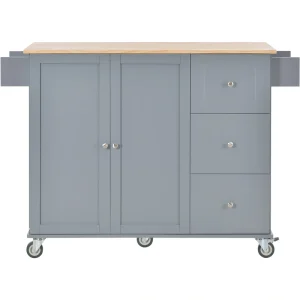 Miki Shinly Gray Mdf Base with Wood Top Rolling Kitchen Island (18.5-in x 54.33-in x 36.22-in)