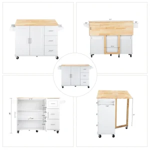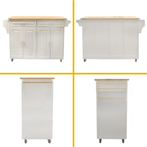 Miki Shinly White Mdf Base with Wood Top Rolling Kitchen Island (18.5-in x 54.33-in x 36.22-in)