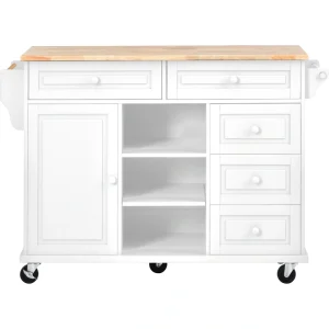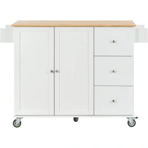 Miki Shinly White Mdf Base with Wood Top Rolling Kitchen Island (17-in x 35-in x 45-in)