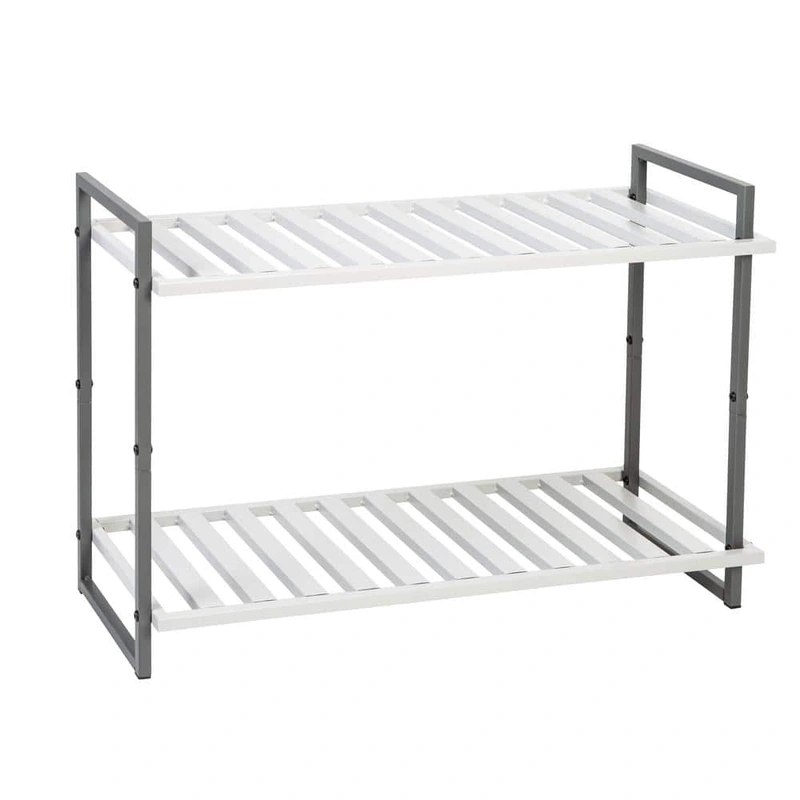 Honey-Can-Do 2-Shelf Gray Steel Shoe Rack Organize your entryway with the Honey-Can-Do 2-Shelf Freestanding Shoe Rack. Crafted from sturdy steel and finished in chic gray tones, this modern shoe rack holds up to six pairs, keeping your space tidy while ens