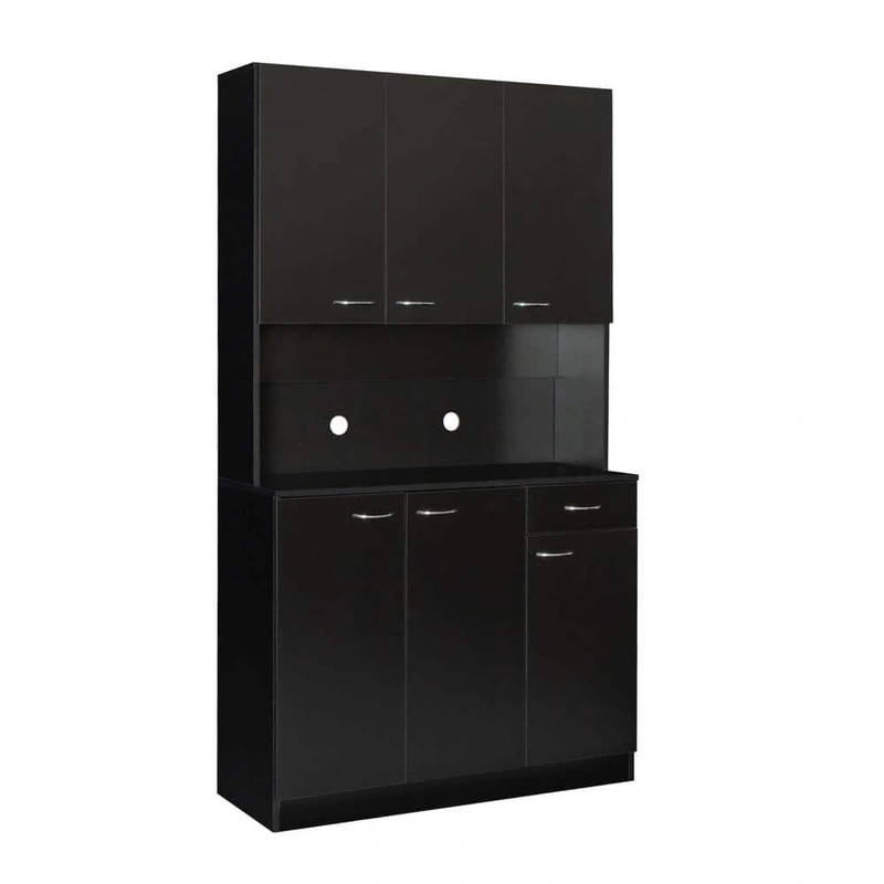 Tileon Black Wood Corner Kitchen Cabinet Optimize your kitchen storage with the Tileon Black Wood Corner Kitchen Cabinet. Featuring 6 doors, 1 drawer, and an open shelf, this freestanding unit is made from durable MDF for long-lasting use. Its modern desig