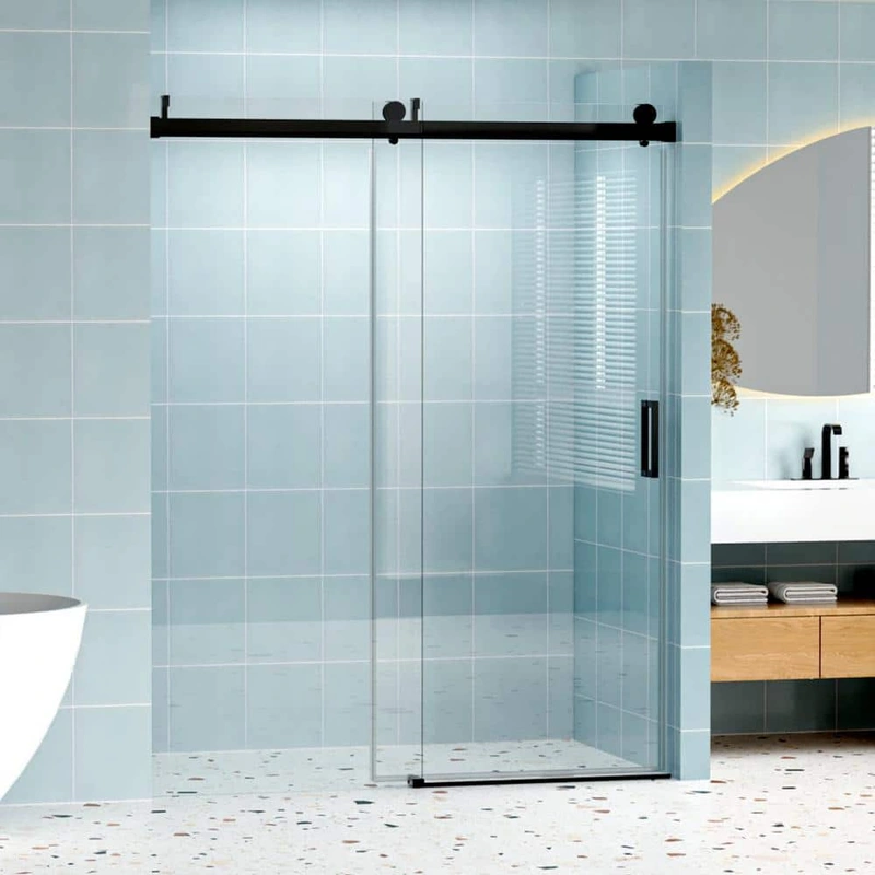 Upgrade your bathroom with the Abruzzo Matte Black Frameless Sliding Shower Door and enjoy a stylish, serene shower experience every day.