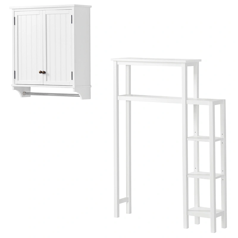 White Wall-Mount Linen Cabinet with Shelves Transform your bathroom into a haven of organization with the Alaterre Wall-Mount Linen Cabinet. Designed for efficient use of space, this cabinet mounts over your toilet, offering a stylish white wood finish and