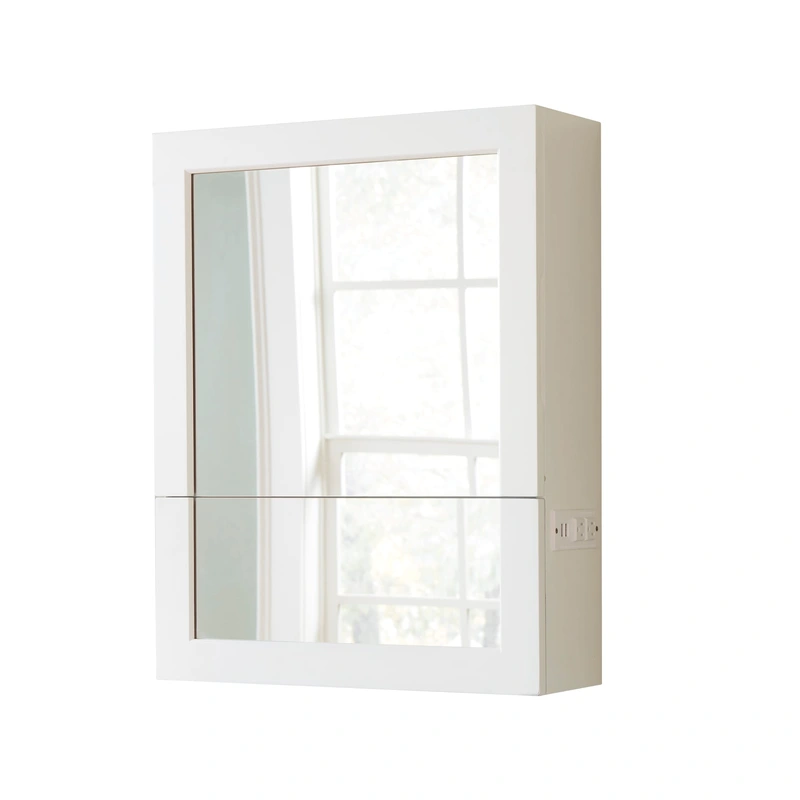 White Soft Close Bathroom Cabinet with USB Upgrade your bathroom with the allen + roth White Soft Close Bathroom Wall Cabinet. This sleek 20" x 26" cabinet combines modern convenience with elegant design, featuring soft-close doors and a built-in USB outle