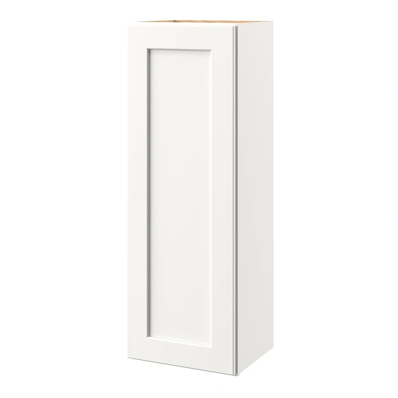 Aveley 15-in Shaker Linen Cabinet The Aveley 15-in Linen Wall Cabinet by allen + roth is designed for those who value both style and functionality. With its flat panel Shaker door design, this cabinet delivers a modern, seamless look while offering ample s