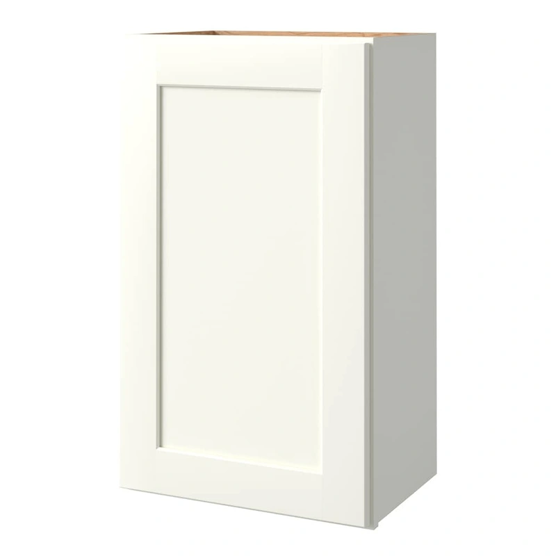 Aveley 18-in Linen Wall Cabinet Elevate your space with the Aveley 18-in Wall Cabinet, combining a true painted bright white finish with sleek shaker door style for a modern, seamless look. Pre-assembled and crafted for durability, it includes soft-close f