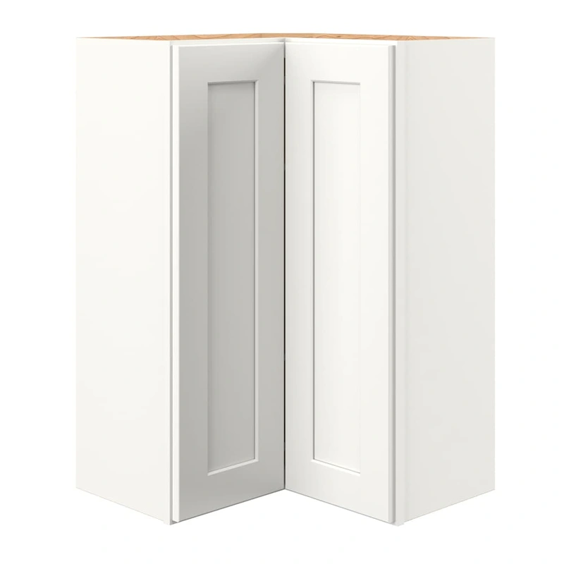 Aveley Diagonal Corner Wall Cabinet Elevate your kitchen with the Aveley Diagonal Corner Wall Cabinet, featuring a flat panel Shaker style for a modern and seamless look. With its true painted finish that blends hardwood and engineered material, this fully
