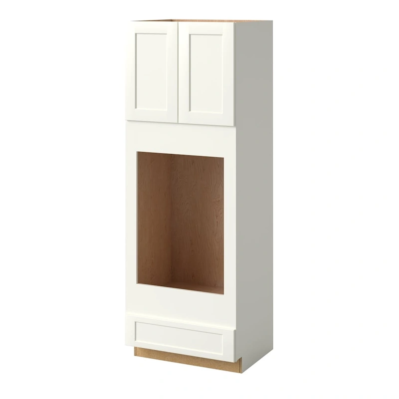 Aveley 33-in Shaker Style Double Oven Base Cabinet Transform your kitchen with the Aveley Double Oven Base Cabinet, offering a sleek and modern Shaker style with a pristine linen finish. This fully assembled cabinet ensures seamless integration and reliabl