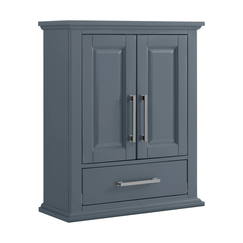 The Brookview Wall Cabinet recreates a sense of refined elegance with its deep slate blue finish, adding a serene yet sophisticated touch to any bathroom. Its brushed nickel hardware gleams subtly, offering a nod to modern opulence. Consider installing this cabinet above your sink to maximize space and compliment your decor with understated luxury. Make it functional art as it seamlessly blends style with practical storage, becoming an indispensable part of a luxurious bathroom.