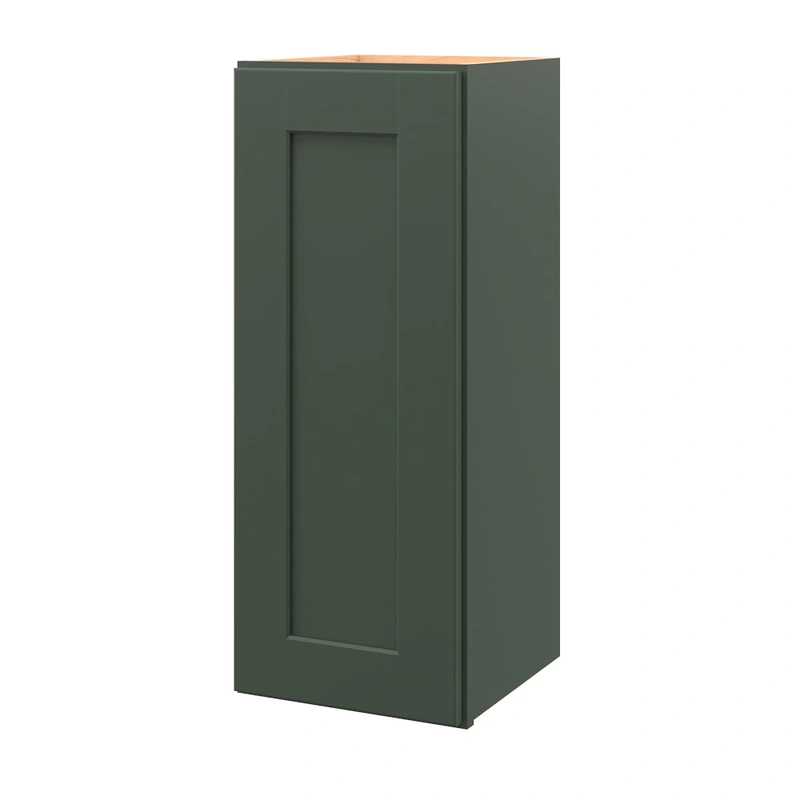 Sage Wall Cabinet - Flat Panel Shaker Style Enhance your home with the allen + roth Galway wall cabinet, styled in a rich sage finish. This fully assembled Shaker-style cabinet delivers both elegance and practicality, featuring soft-close doors and durable