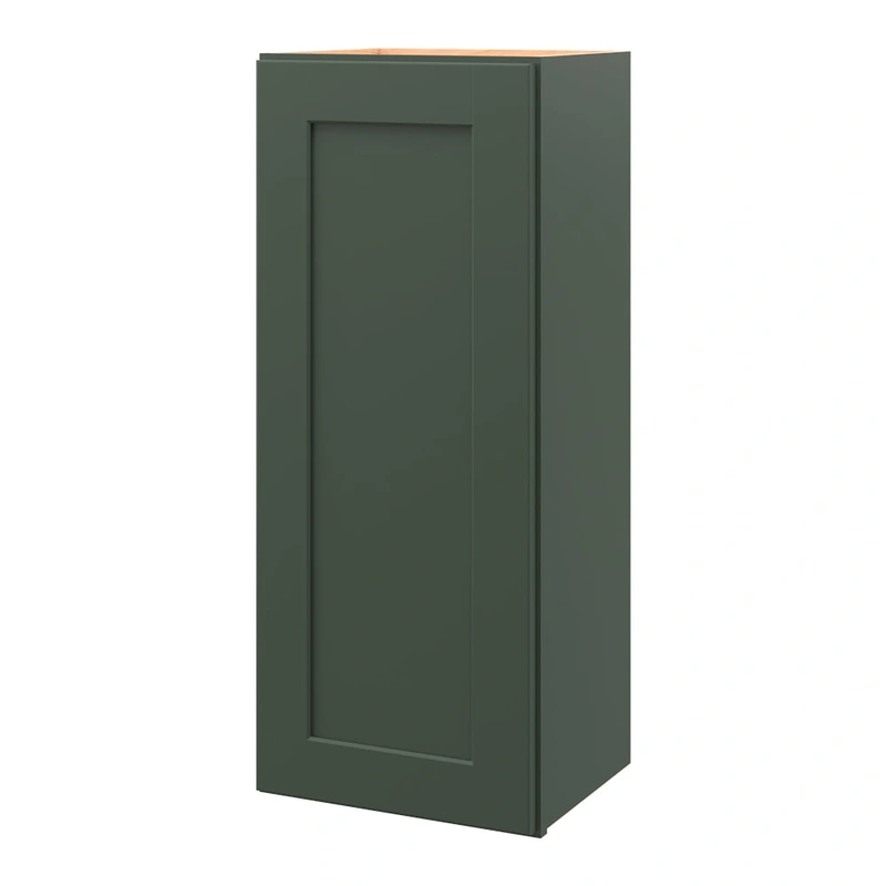 Sage Wall Cabinet with Shaker Door Bring a touch of elegance to your home with the allen + roth Galway Wall Cabinet, featuring a sleek Sage finish and a Shaker-style flat panel door. This fully assembled unit promises superior durability with its blend of