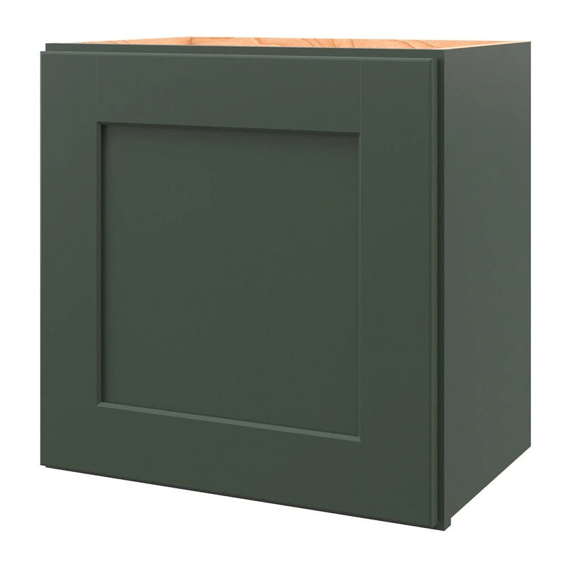 The allen + roth Galway Sage Wall Cabinet boasts a stylish Shaker door design that seamlessly blends modern aesthetics with timeless functionality. This fully assembled cabinet is crafted for durability with a beautiful, painted finish that adds a pop of sophisticated color while offering effortless soft-close doors.