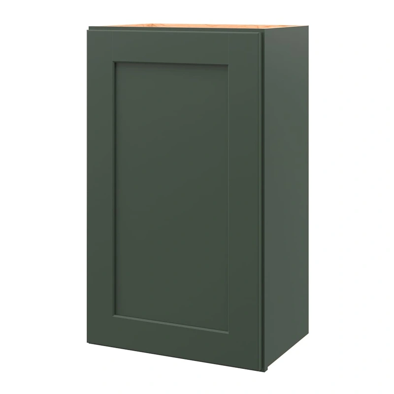 Sage Shaker Wall Cabinet - 18x30 inch Elevate your kitchen space with the allen + roth Galway Sage Wall Cabinet. Featuring a robust blend of hardwoods, it offers superior durability with a modern Shaker-style flat panel design. The sage finish adds a touch