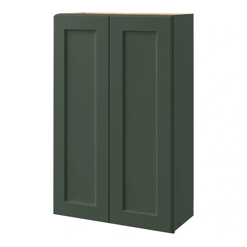 Sage Flat Panel Wall Cabinet Enhance your space with the allen + roth Galway Wall Cabinet, featuring a serene sage finish and a modern flat panel square door style that exudes both elegance and durability. This fully assembled cabinet is crafted from a ble