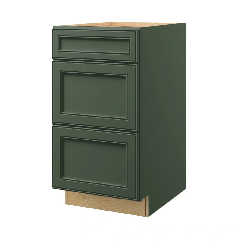 Sage 3-Drawer Base Cabinet The allen + roth Heathrow Sage 3-Drawer Base Cabinet brings sophistication and practicality to any space with its recess paneled design and soothing sage finish. Its fully assembled structure, crafted from a blend of hardwoods an