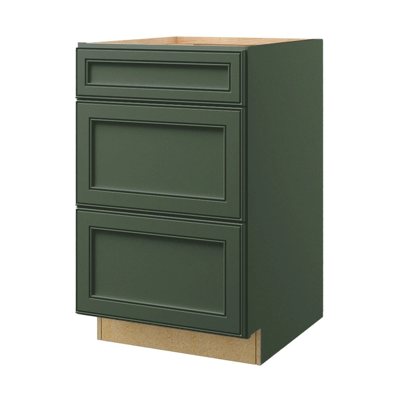 This fully assembled Heathrow Sage 3-Drawer Base Cabinet combines the elegance of transitional style with the practicality of superior craftsmanship. The cabinet features a painted finish in a soothing sage tone, offering both durability and a seamless aesthetic that enhances any modern space.