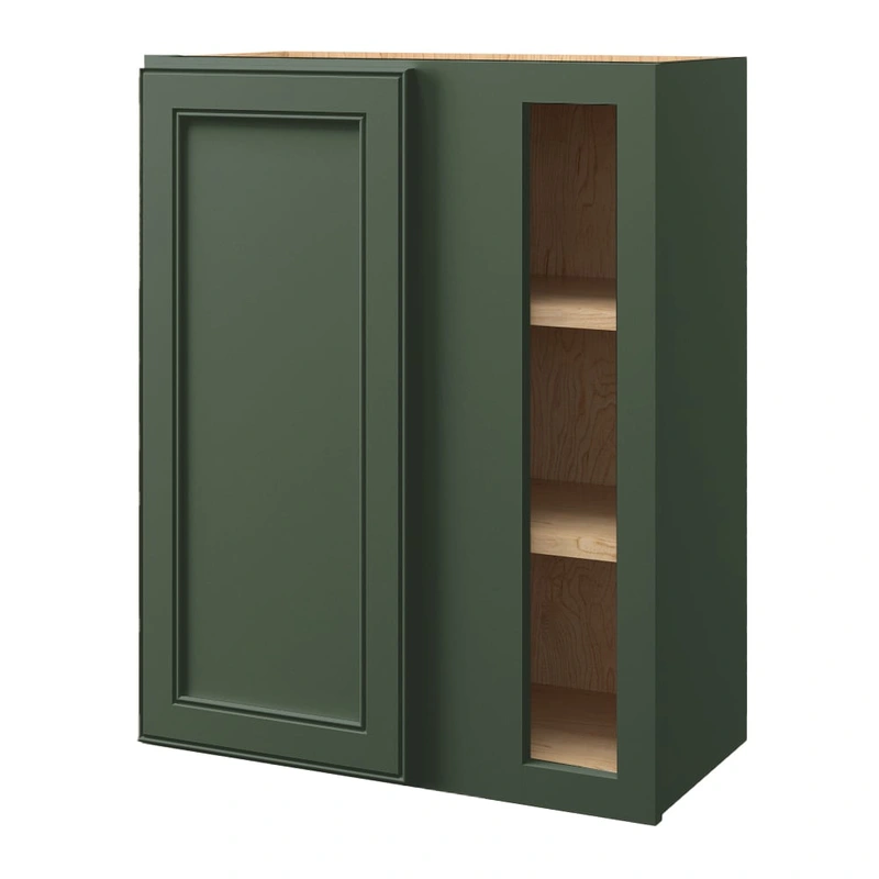 Transform your kitchen or pantry with the allen + roth Heathrow Sage Blind Corner Wall Cabinet. Featuring a beautifully painted finish that blends hard woods and engineered materials, this cabinet promises exceptional durability. Soft-close hinges ensure silent operation, while full-overlay doors deliver a seamless, modern look to elevate any space.