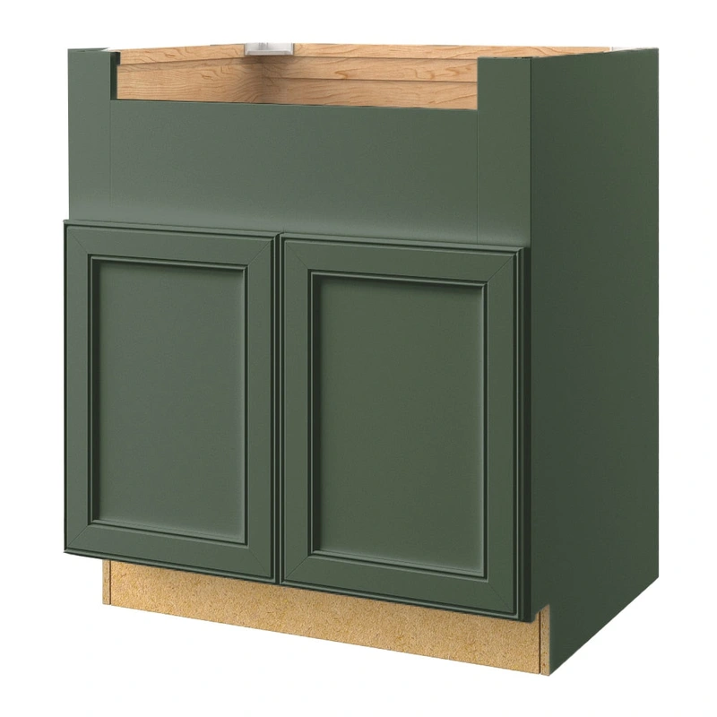 Sage Apron Front Sink Base Cabinet The Heathrow Apron Front Sink Base Cabinet by allen + roth combines elegant design with durable construction in a soft sage finish. Ideal for farmhouse style kitchens, it offers the luxury of soft-close doors and a fully