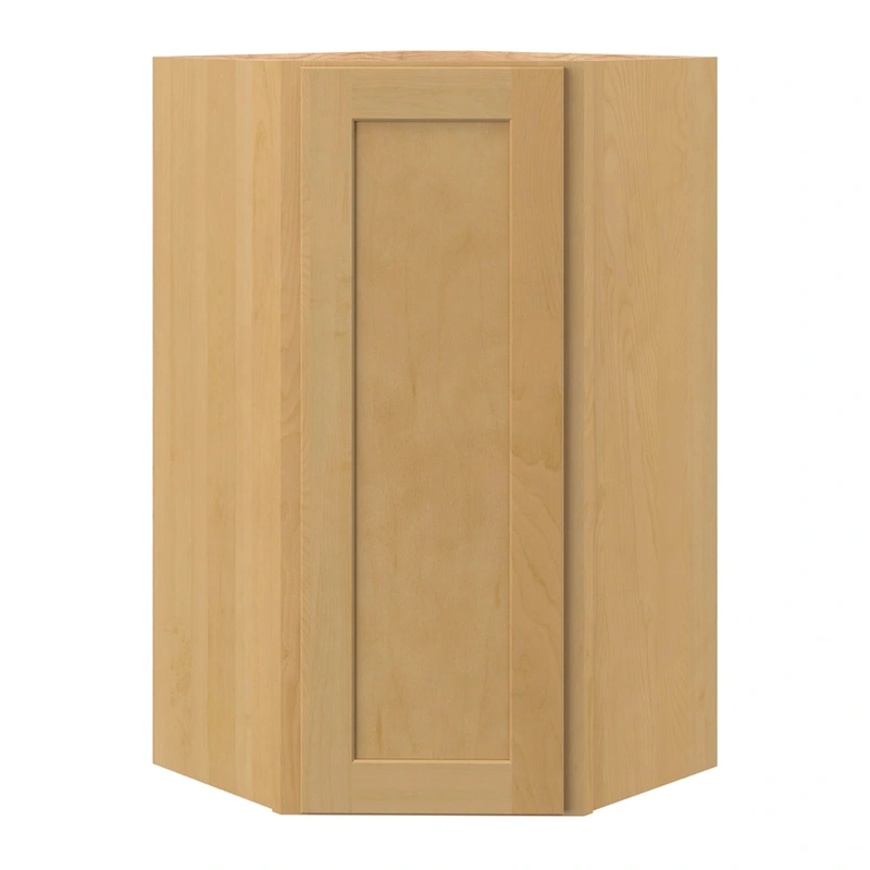 Elevate your kitchen or living space with the allen + roth Innsbrook Diagonal Wall Cabinet, featuring a flat panel Shaker door style. Its warm, Rye stained finish adds a touch of natural elegance, while the soft-close doors provide seamless, silent functionality. Perfectly crafted for modern and traditional spaces alike, this cabinet is both an aesthetic and practical choice.