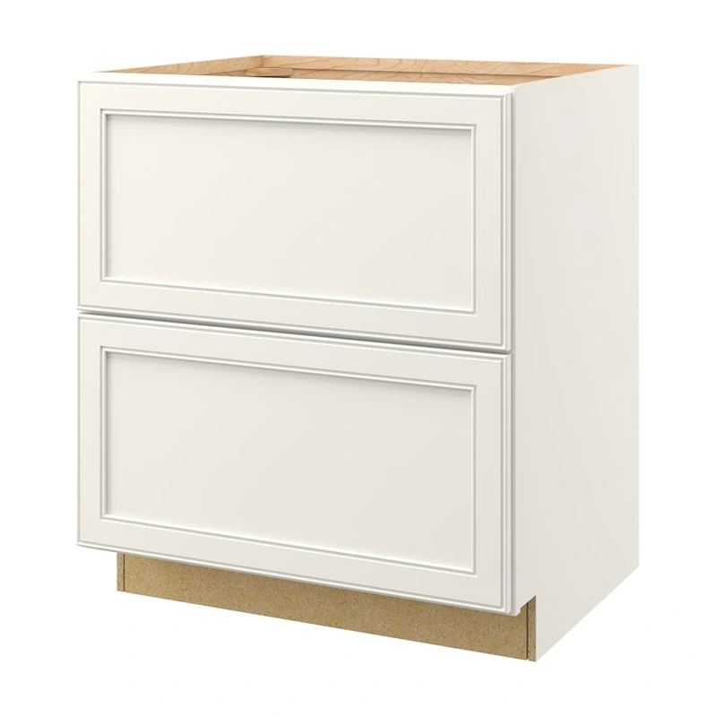 McKeller 30" Linen 2-Drawer Base Cabinet Experience elegance with the allen + roth McKeller Linen Base Cabinet, designed for modern kitchen aesthetics. This premium cabinet boasts a painted finish with soft-close drawers and dovetail construction, offering