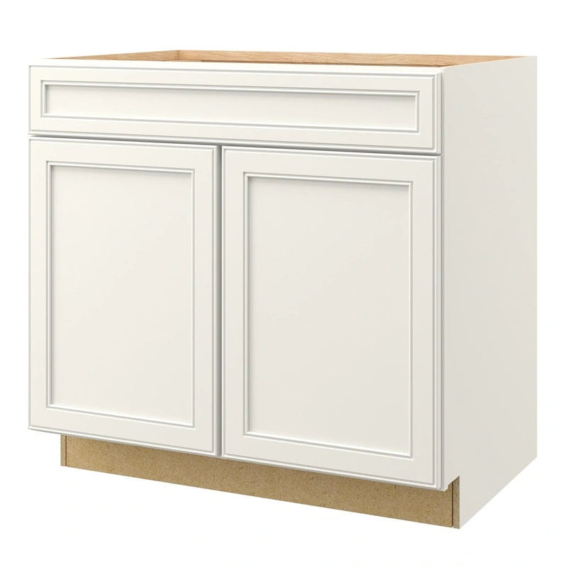 The allen + roth McKeller Linen 1-Drawer Base Cabinet combines refined design with exceptional function, perfect for modern kitchens or baths. Featuring a soft-close system and a true painted finish with durable hard woods and engineered materials, this cabinet offers seamless integration and long-lasting style.