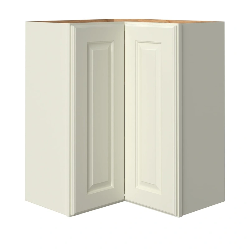 Pattingham Harbor Corner Wall Cabinet The Pattingham Harbor Diagonal Corner Wall Cabinet by allen + roth transforms any kitchen with its modern design and exceptional craftsmanship. Featuring a raised panel square style with soft-close doors, this cabinet