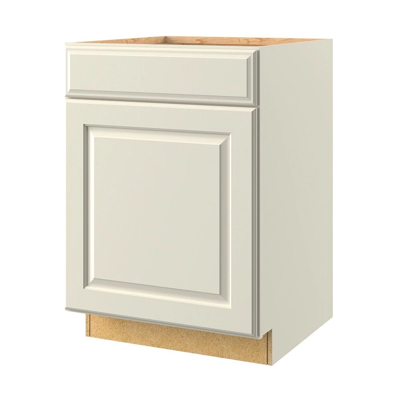 24-Inch Shaker Style Base Cabinet The allen + roth Pattingham 1-Drawer Base Cabinet combines contemporary elegance with practical functionality. Its seamless raised panel shaker style, finished in a sophisticated Harbor hue, offers a clean and versatile de