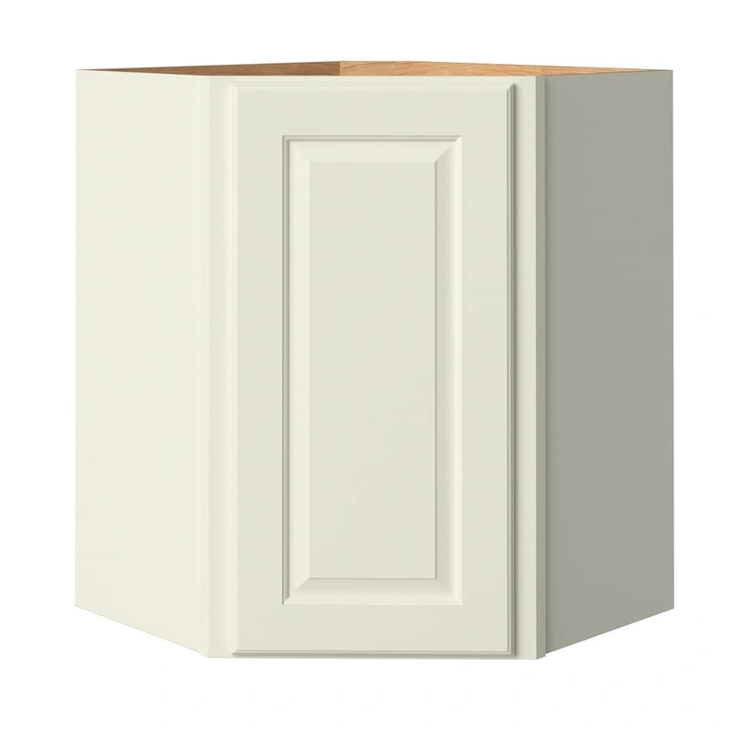 Elevate your kitchen or bathroom with the Pattingham Corner Wall Cabinet, featuring a raised panel square style and an elegant Harbor gray finish. This fully assembled cabinet is built for durability and style, offering a seamless look with full overlay doors and a soft-close mechanism.