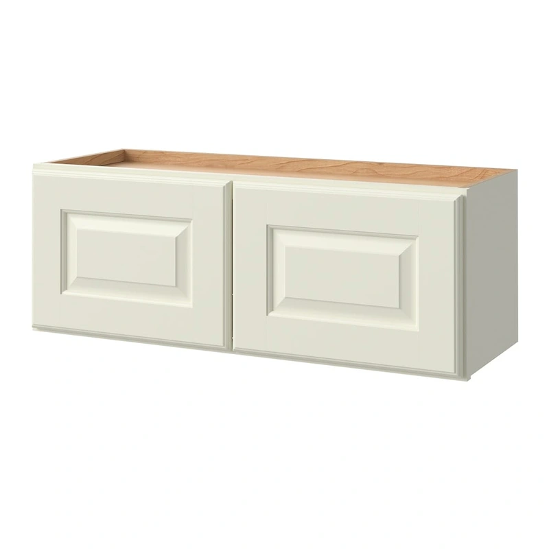Elevate your space with the allen + roth Pattingham Wall Cabinet, featuring a sophisticated Harbor gray finish and graceful raised panel doors. Fully assembled, this cabinet combines artistry and functionality, offering a seamless, modern look with its full-overlay design and soft-close hinges.