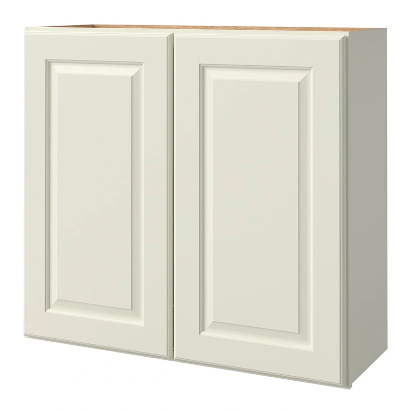 Pattingham 33" Harbor Wall Cabinet Elevate your home with the allen + roth Pattingham Harbor Wall Cabinet, boasting a sophisticated raised panel design. This fully assembled cabinet features a durable painted finish, soft-close doors, and a TuffTech system