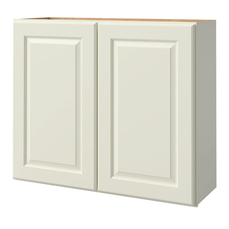 The allen + roth Pattingham Wall Cabinet offers a blend of durability, style, and functionality. With a striking raised panel square door design in a soft gray Harbor finish, this 36-inch wide cabinet is made to stand the test of time with its robust wood and MDF construction, ensuring longevity and seamless integration into any kitchen space.