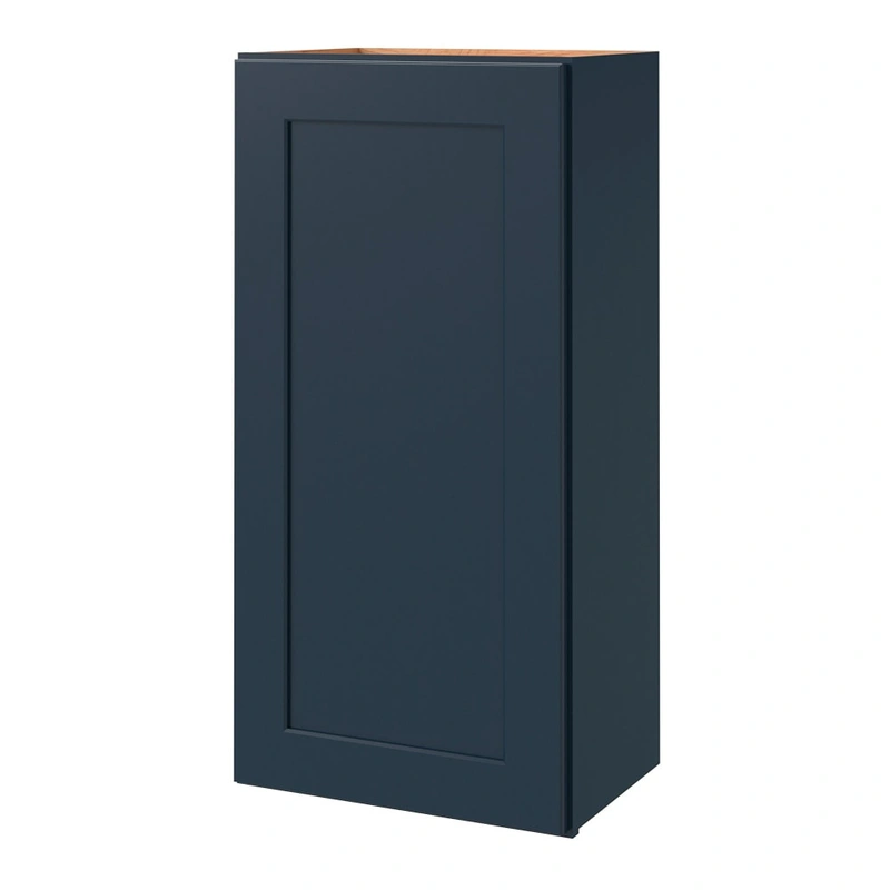 Navy Shaker Wall Cabinet Transform your space with the allen + roth Navy Shaker Wall Cabinet, expertly designed to blend elegant style with outstanding functionality. This fully assembled cabinet features a classic flat panel Shaker design, pairing navy fi