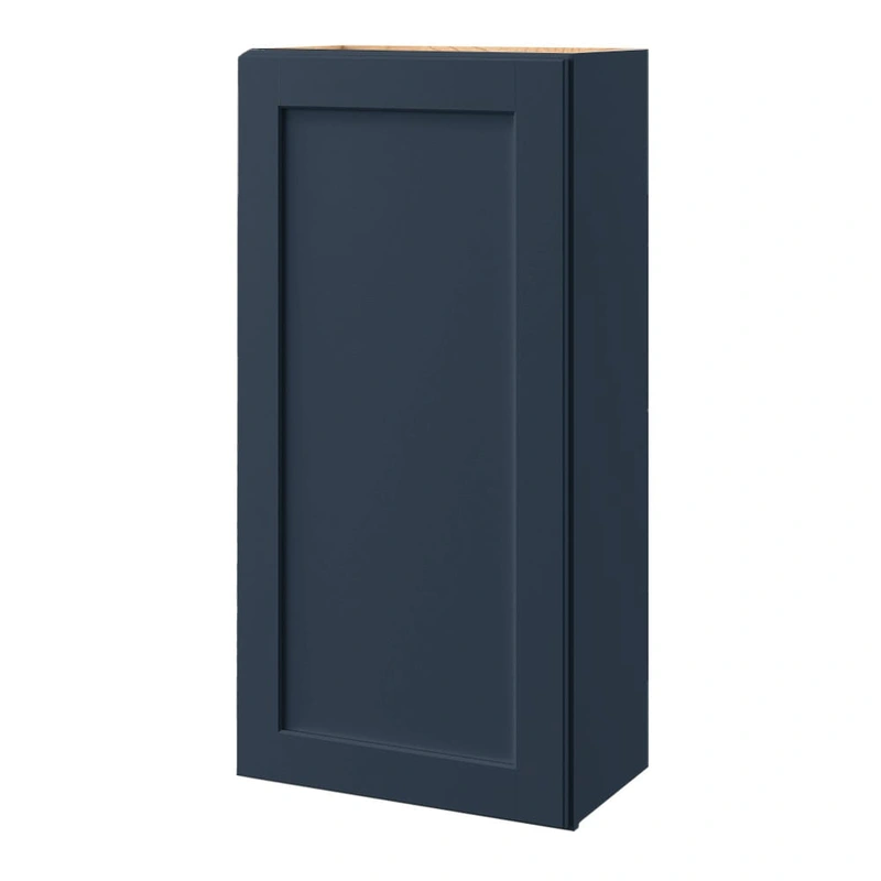 Navy 21" Shaker Wall Cabinet Elevate your space with the allen + roth Port Navy Cabinet, featuring a sleek Shaker door style. This fully assembled wall cabinet blends classic design with modern touches, perfect for adding both function and flair to any roo
