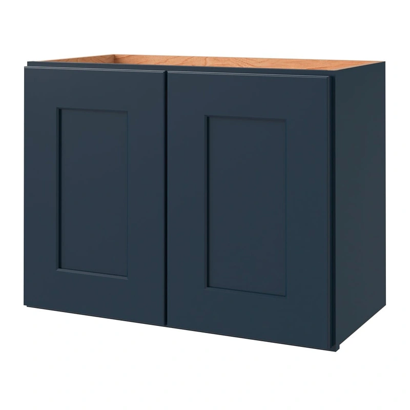Envision your space transformed by the deep, sophisticated hue of the Navy Shaker Style Wall Cabinet. Its flat panel design exudes a calm elegance, perfect for cultivating an organized oasis in your home. Position it against soft grays or crisp whites for an elevated contrast that highlights its bold, yet classic charm. Let this cabinet become a centerpiece of luxurious refinement, anchoring your decor in timeless beauty.