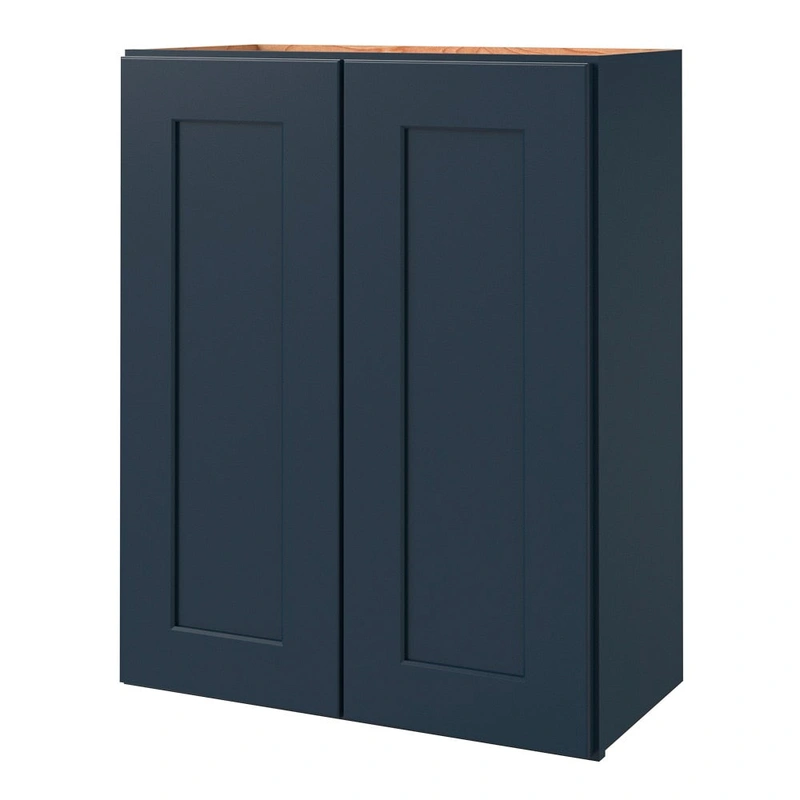 Navy Shaker Wall Cabinet, 24 x 30 in. The allen + roth Navy Shaker Wall Cabinet offers a modern, seamless design with its flat panel doors and rich navy finish. Engineered for durability and elegance, it includes soft-close features and full-depth woodgrai