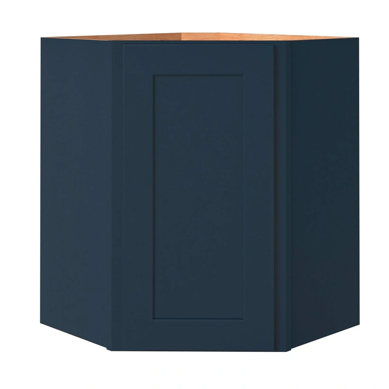 Navy Shaker Corner Wall Cabinet Enhance your home with the allen + roth Port Navy Corner Wall Cabinet, blending Shaker design with a modern edge. This fully assembled, durable cabinet features a striking navy finish that effortlessly elevates any room. Key