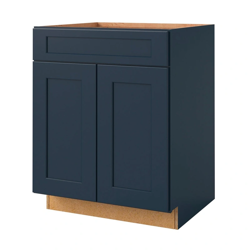 Navy Shaker Style Base Cabinet - Fully Assembled Elevate your space with the allen + roth Port Navy Shaker Style Base Cabinet, featuring a soft-close mechanism and a rich navy finish. This durable and elegantly crafted cabinet offers functionality with sty