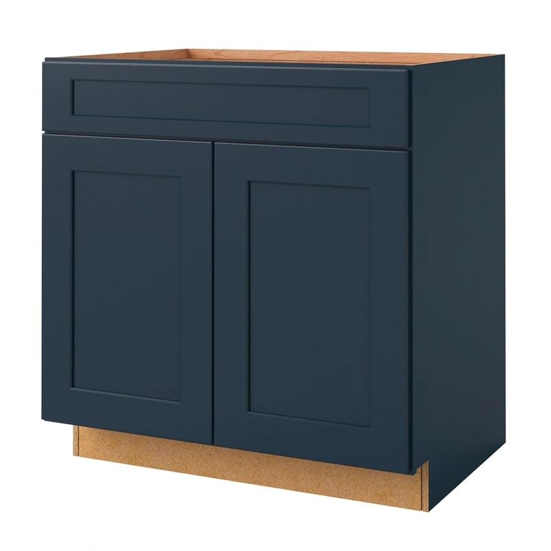 Navy Shaker Style Base Cabinet The allen + roth Port Shaker Style Base Cabinet combines a classic design with modern functionality. This fully assembled cabinet offers a rich navy finish that adds a touch of elegance to any room, while its soft-close doors