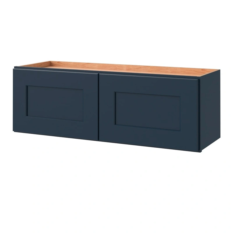 Navy Shaker Wall Cabinet, 36-inch The allen + roth Port 36-inch Navy Wall Cabinet combines modern aesthetics with practical functionality. Its Shaker door style offers a timeless appeal, while the rich navy finish adds a stylish touch to any room. Fully as
