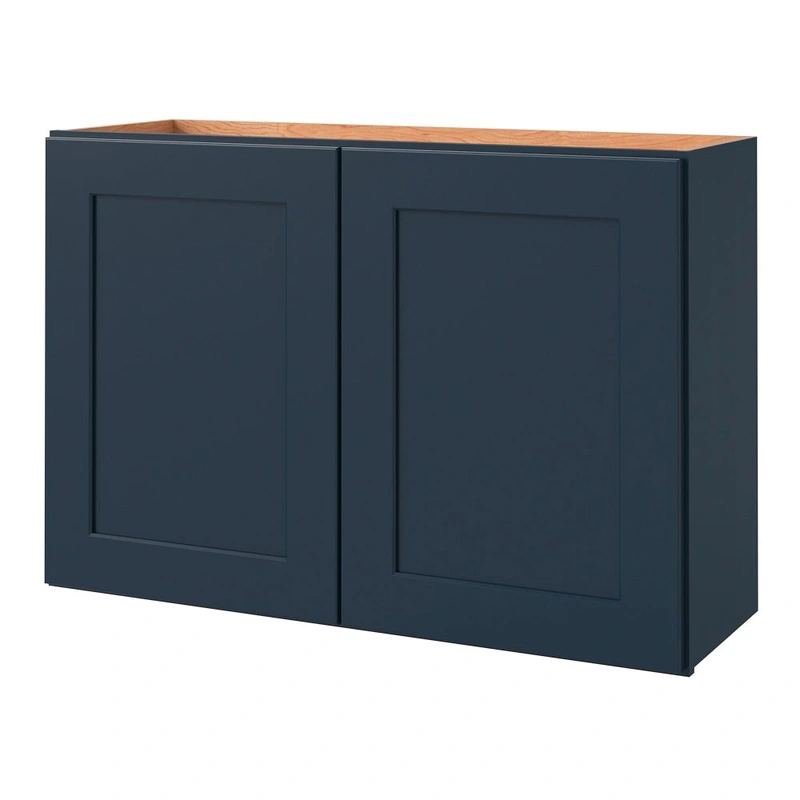 Navy Shaker Wall Cabinet, 36in Elevate your space with the allen + roth Port Navy Wall Cabinet, featuring a striking navy finish and timeless Shaker-style doors. Fully assembled and crafted for modern living, this cabinet adds sophistication with its seaml