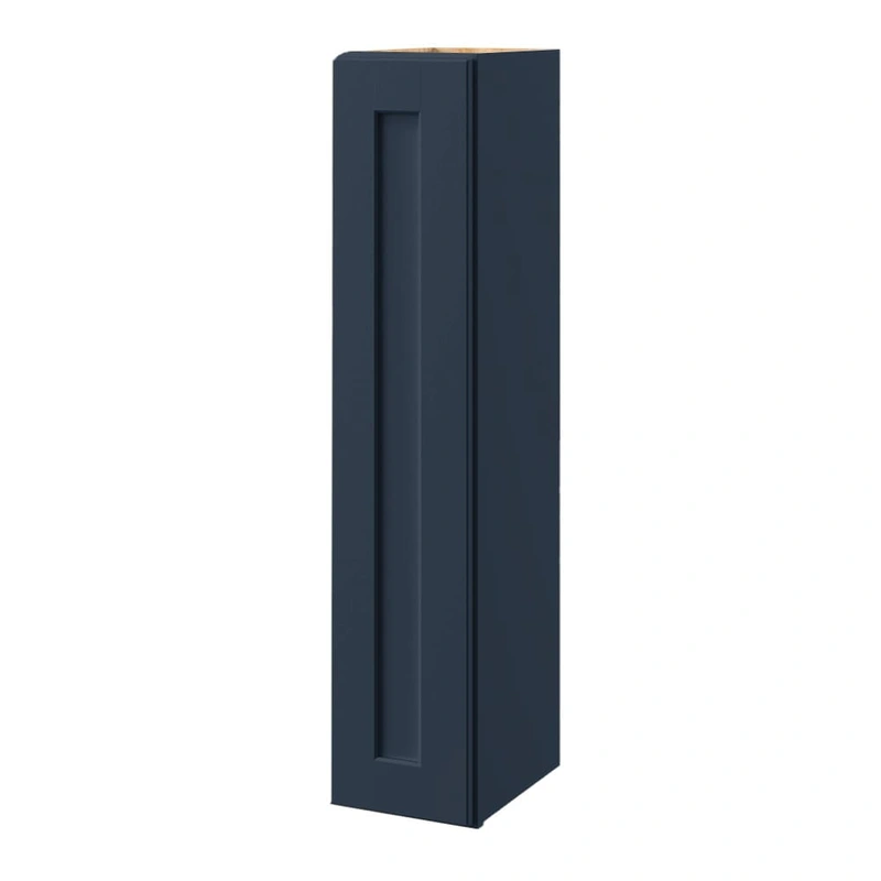 Navy Shaker Wall Cabinet Transform your space with the allen + roth Port Navy Wall Cabinet, featuring a sleek Shaker door style with a hand-painted finish for elegance and durability. This fully assembled cabinet offers superior functionality with its soft
