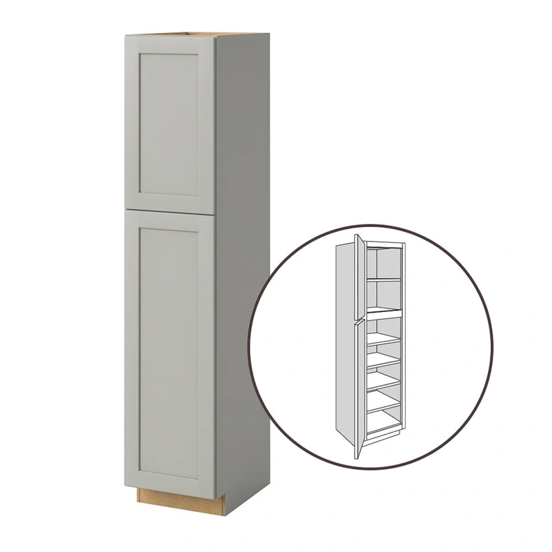 Stone Shaker Pantry Cabinet Enhance your kitchen with the sleek sophistication of the allen + roth Stonewall Shaker Pantry Cabinet. The fully assembled unit features a stylish gray flat panel door design thats both modern and versatile, perfect for any kit