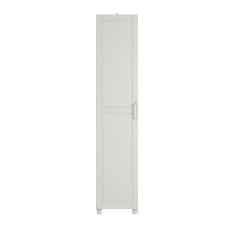 The Ameriwood Home Callahan Garage Cabinet offers a stylish solution for organized storage in your garage or any room. Made from durable composite wood, it features a sleek white water-resistant finish that’s easy to clean, ensuring long-lasting beauty and functionality. Its freestanding design with adjustable shelves accommodates various storage needs, making it the ultimate utility cabinet.