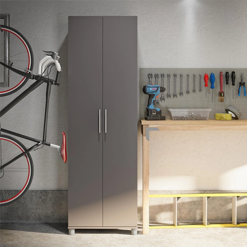 Graphite Grey Freestanding Utility Storage Cabinet Upgrade your organizational space with the Ameriwood Home Camberly Freestanding Utility Storage Cabinet. This cabinetry masterpiece, finished in sleek graphite grey, seamlessly fits into a variety of rooms