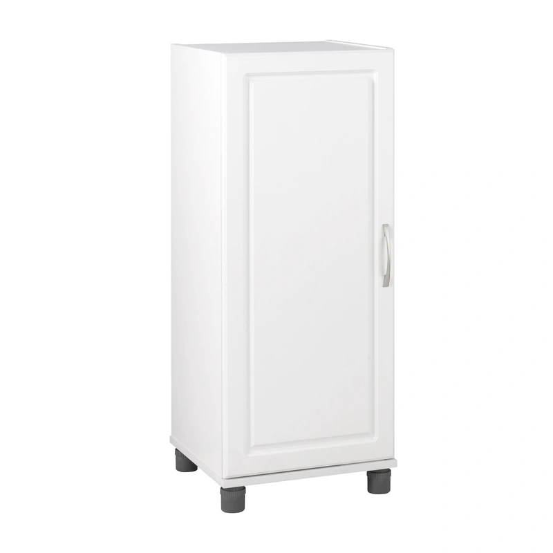White Freestanding Garage Cabinet The Ameriwood Home Kendall Garage Cabinet offers a sleek, space-saving storage solution perfect for any garage, kitchen, or laundry room. Crafted from composite wood with a crisp white finish, this cabinet ensures both dur