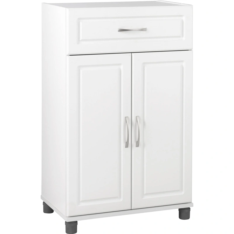 23.43-in Wide Freestanding Garage Cabinet - White The Ameriwood Home Kendall Garage Cabinet provides a sleek and practical solution for organizing your storage space. Made from durable composite wood, this white cabinet features a drawer and two soft-closi
